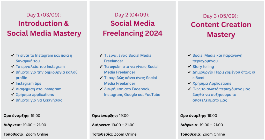 Μάθε για την Τεχνητή Νοημοσύνη, τα Social Media, την παραγωγή περιεχομένου και πως να αποκτήσεις επιπλέον εισόδημα μέσα από την διαχείριση των Social Media μικρών επιχειρήσεων.