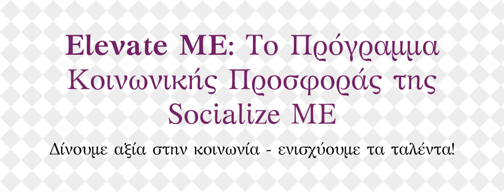 Στη Socialize ME πιστεύουμε στη δύναμη της κοινωνικής προσφοράς και της ανταλλαγής γνώσεων. Με το Elevate ME, θέλουμε να δώσουμε ευκαιρίες σε επιχειρήσεις που χρειάζονται καθοδήγηση και σε νέους που αναζητούν πρακτική εμπειρία.